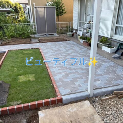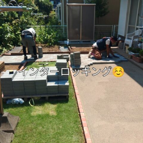 芝生の手入れが大変になってきたので少し残して外は、インターロッキングを敷き詰めてほしいのですがと御依頼がありました🎵