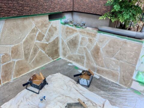 石張り風に下地を作ります❗