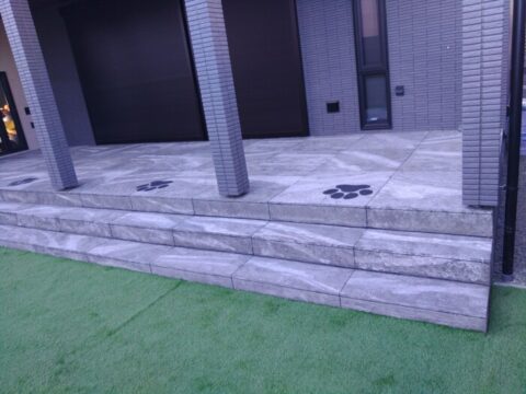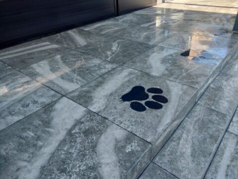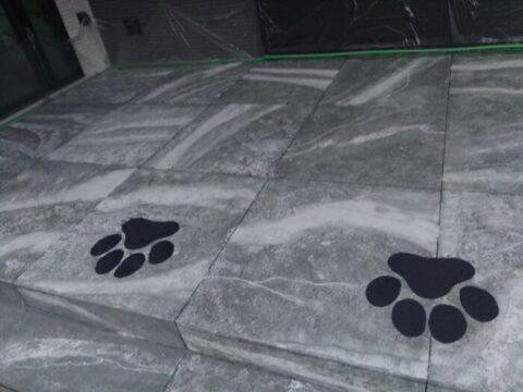今あるコンクリートの床やタイルの上に施工出来る画期的な工法のローラーストーンでタイル風デッキがカッコ良く仕上がりました✨