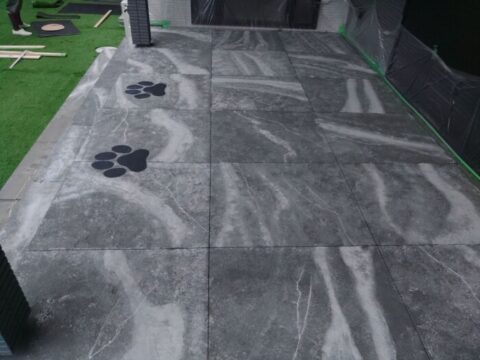企業秘密なのでお見せ出来ませんがタイルの形とワンちゃんの肉球の下地が完成しました☺️